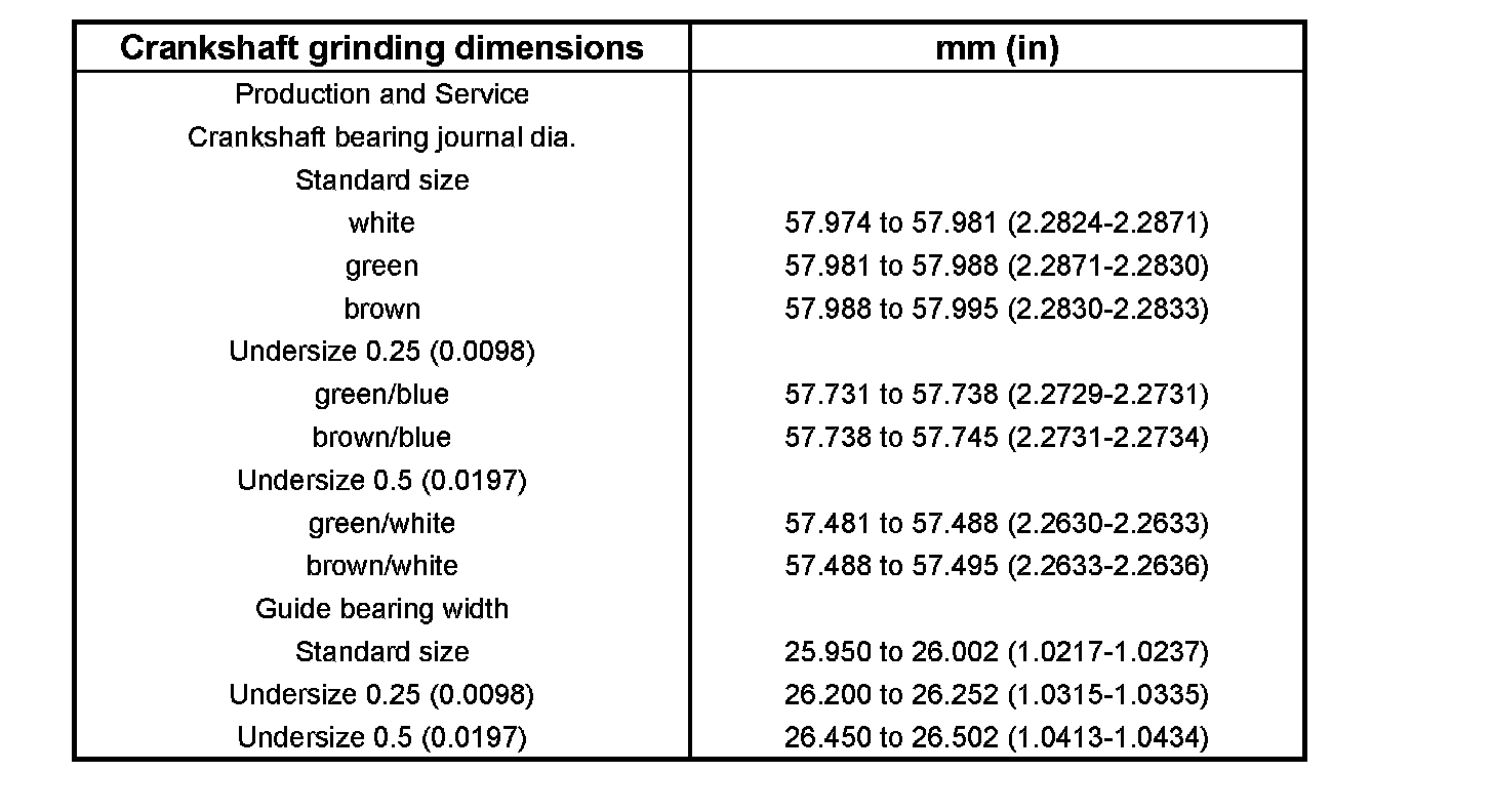 When installing new crankshaft bearings or replacing bearings, refer to the selection table. Select and install the new crankshaft bearings.