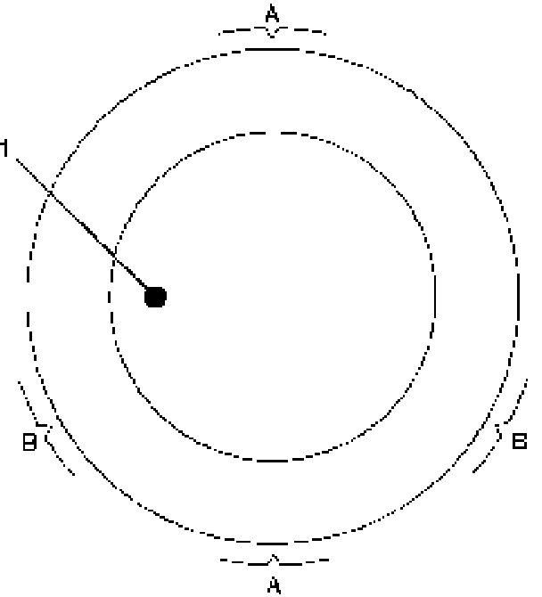 Oil scraper rings (B) -offset 25 to 50 mm (1 to 2 inch) to left and right from gap of intermediate ring.