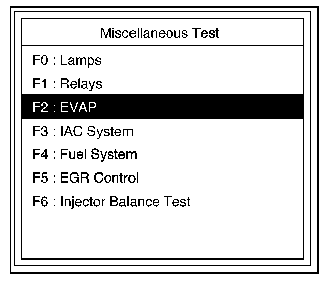 4. Select F2:EVAP Test in the Miscellaneous Test.
