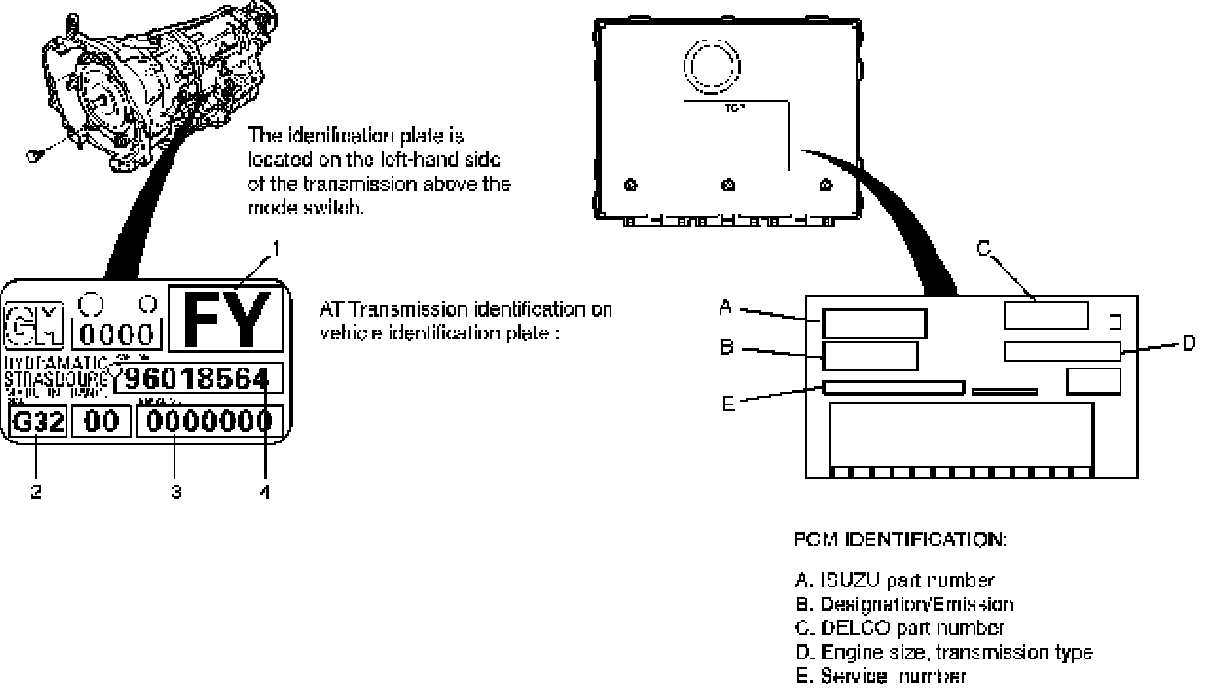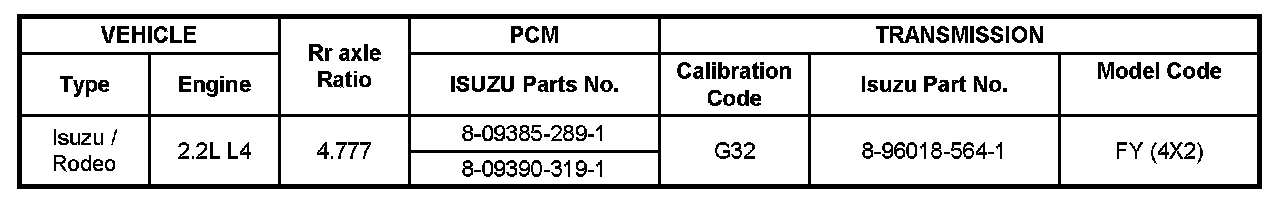 The chart below contains a list of all important information concerning rear axle ratio, Powertrain Control Module (PCM), and transmission identification.