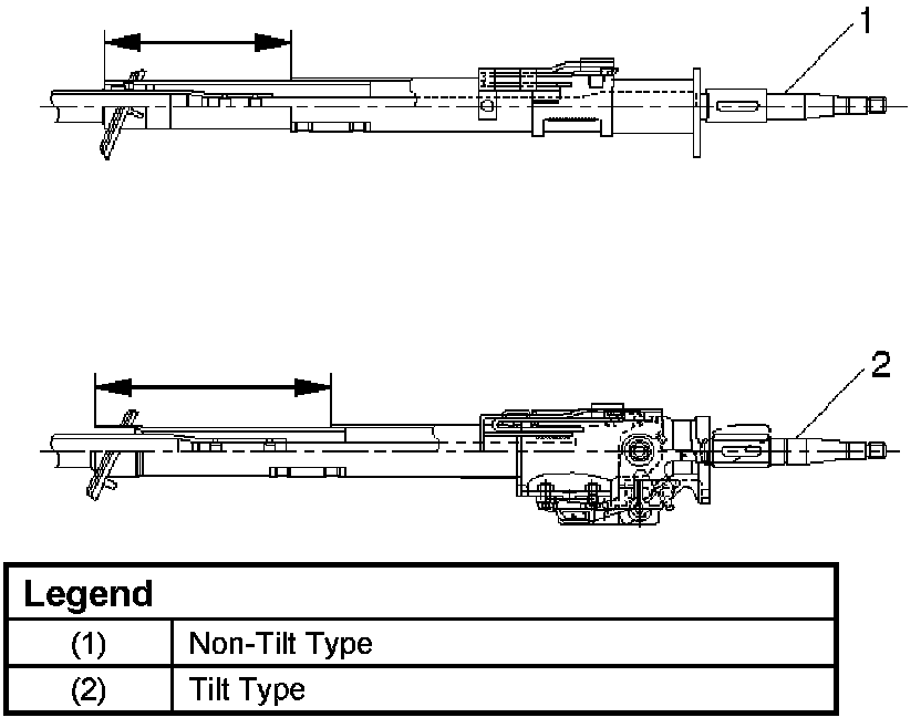 Check the shaft length from the upper end of the slide joint to the end of the shaft. If column length is not in specifications, steering column should be replaced.
