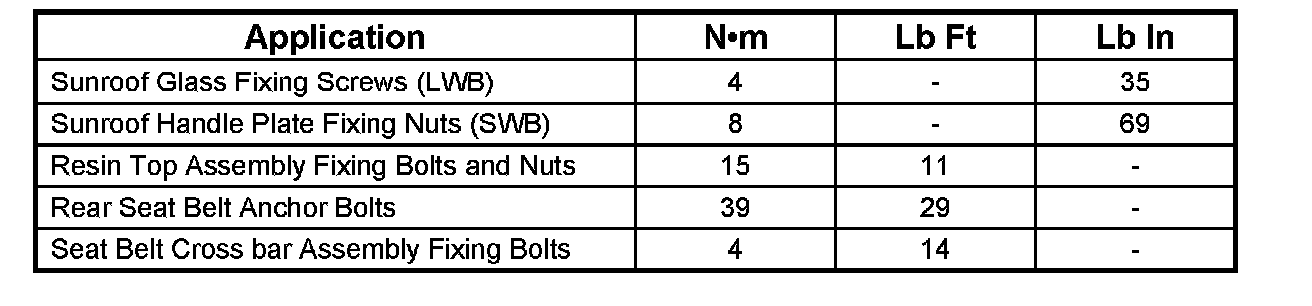 Torque Specifications:
