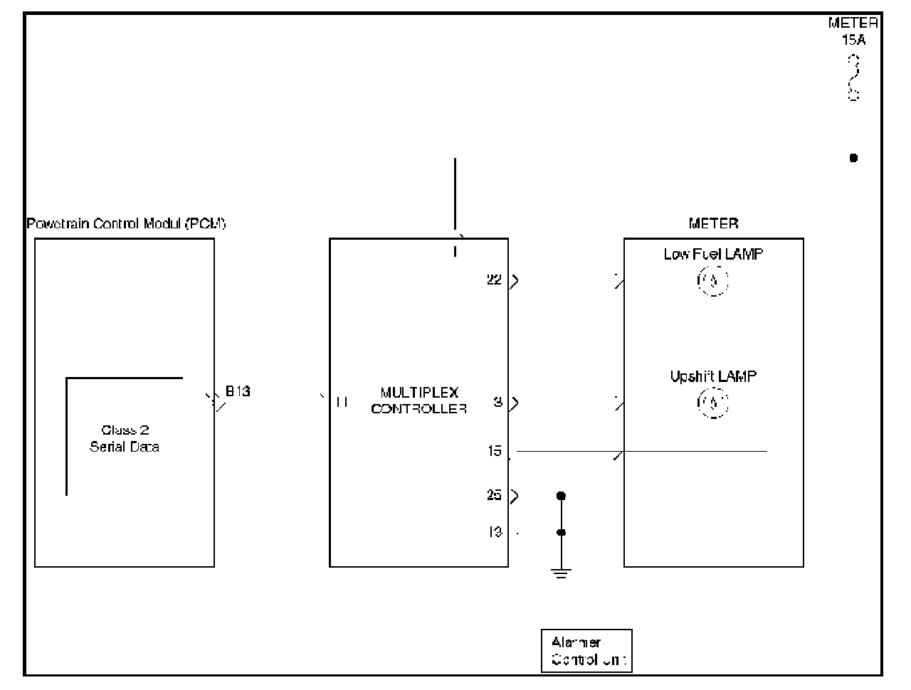 The lamp is controlled by the Power Train Control Module (PCM) and the Multiplex Controller, it is turned "ON" by grounding in the Multiplex Controller.