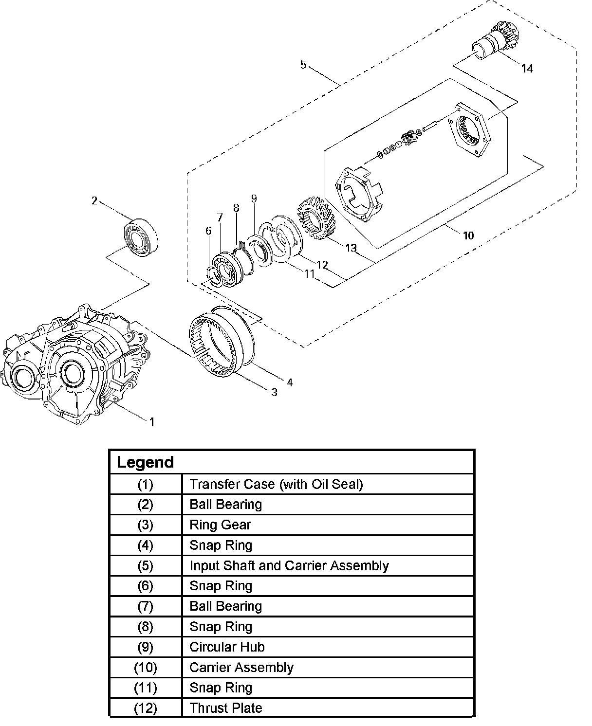 Note: Removing ring gear needs a high-load press. This means the transfer case may be damaged. To remove and replace the ring gear, it is recommended that the transfer case assembly should be replaced.