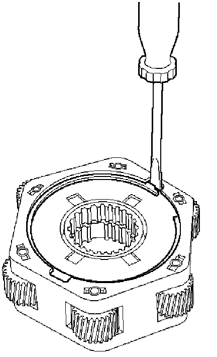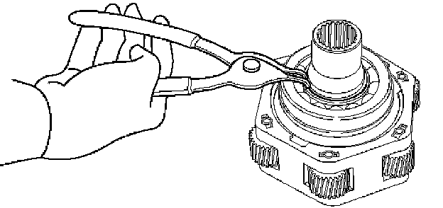 14. Using snap ring pliers, open the snap ring from the gap on the carrier assembly.