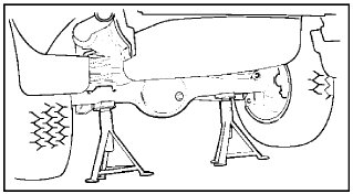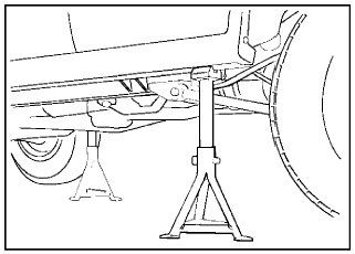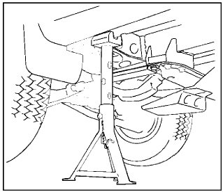 3. Support the front side sill and rear axle with stands. Further, support the front jack up point with a jack.