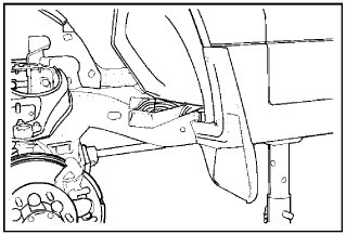 6. Gently lower the jack supporting the rear axle until the cab side mounting can be removed.