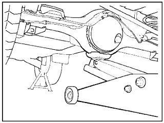 3. Support the rear side sill and frame stands, and support the rear axle with a jack.