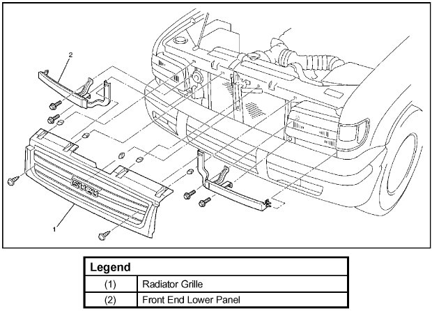 - Install the radiator grille clips remaining on the body side in the radiator grille, and then install the radiator grille on the body.
