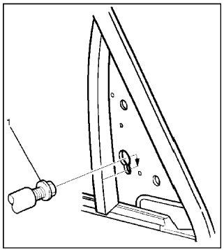 1. When you install the door mirror, install the bolt(1) to the mirror temporarily, hook the bolt to the door side hole and tighten the bolt from the inside.