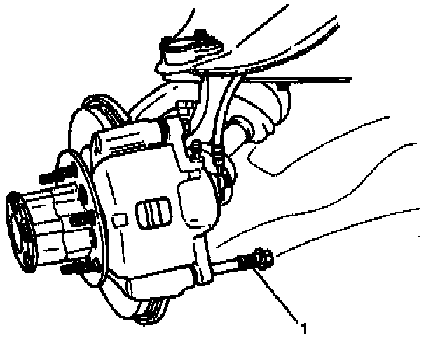 3) Remove caliper assembly and support the caliper assembly so that the brake hose is not stretched or damaged.
