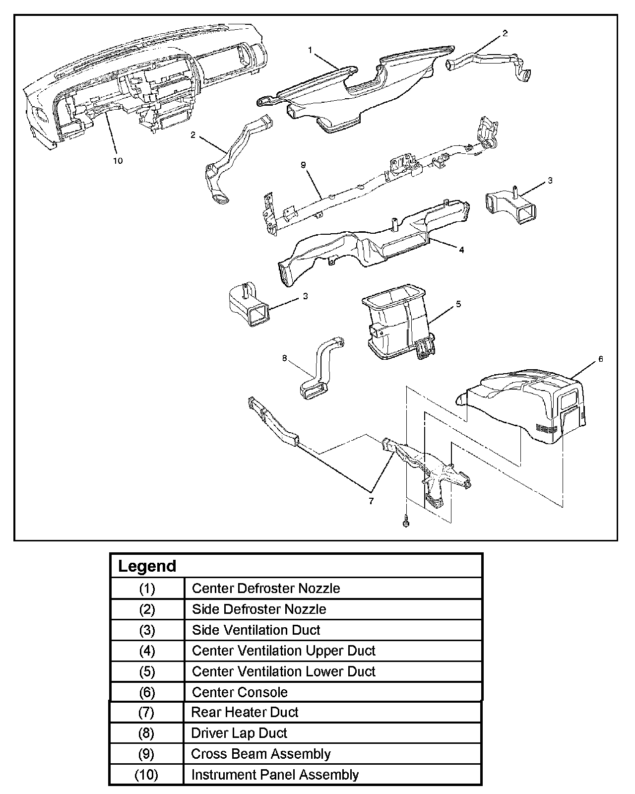 Rear Heater Duct, Defroster Nozzle, Ventilation Duct And Associated Parts: