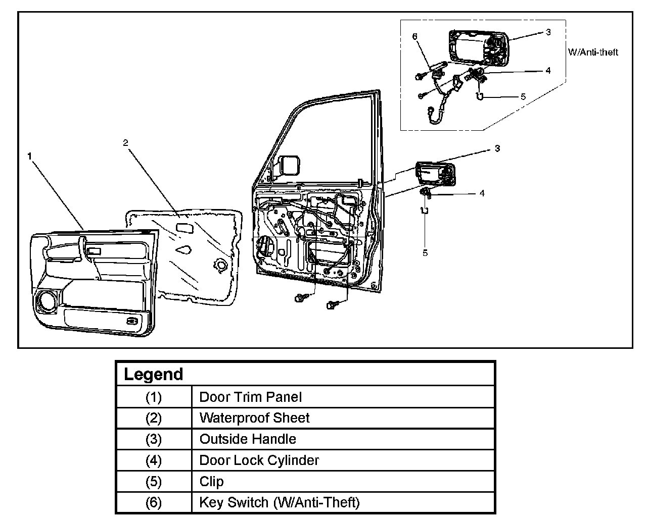 Front Outside Handle, Door Lock Cylinder And Associated Parts: