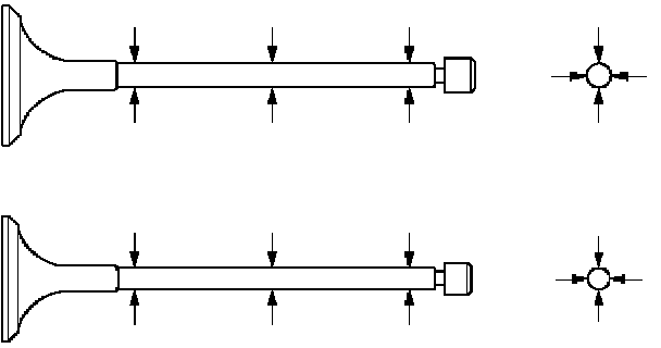 1. Measure the valve stem diameter with a micrometer. If the valve stem diameter is less than the specified limit, the valve and the valve guide must be replaced as a set.