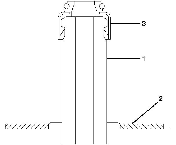 1. Install valve guide (1) to cylinder head. Apply engine oil to the outside of the valve guide. Using valve guide replacer J-42899, drive in a new valve guide from the camshaft side.