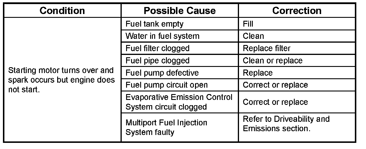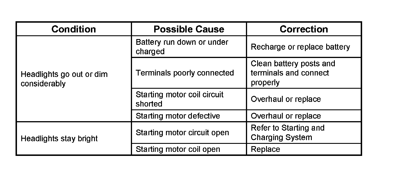 Hard Starting1. Starting Motor Does Not Turn Over