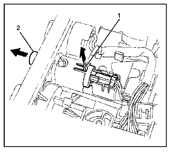 3. Lift up the catch portion (1) of the switch and remove the air conditioning switch (2) while pushing it toward the outside.