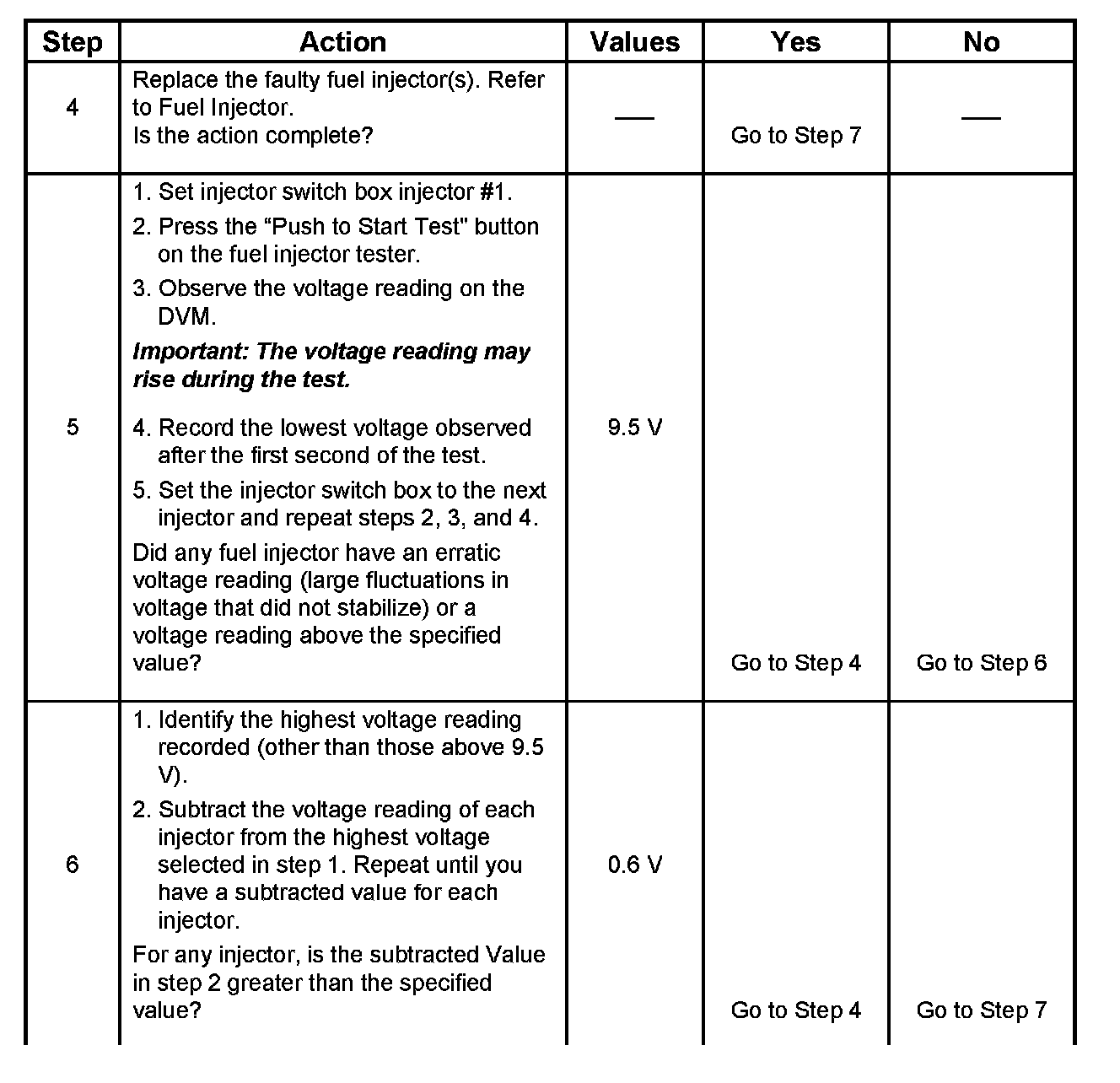 Injector Coil Test Procedure (Steps 1-6) and Injector Balance Test Procedure (Steps 7-11)
