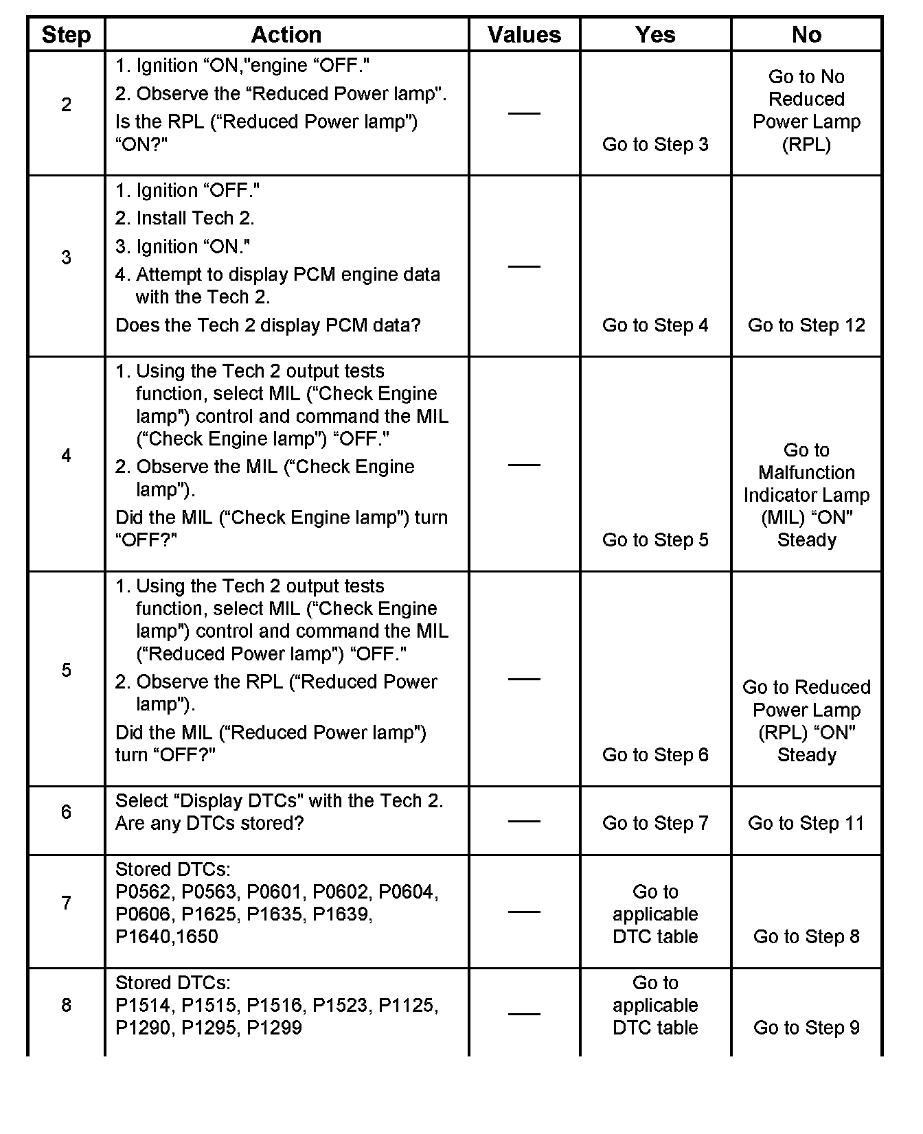 2. The RPL ("Reduced Power lamp") should be "ON" steady with the ignition "ON "engine "OFF."If not, the "No RPL" chart should be used to isolate the malfunction.