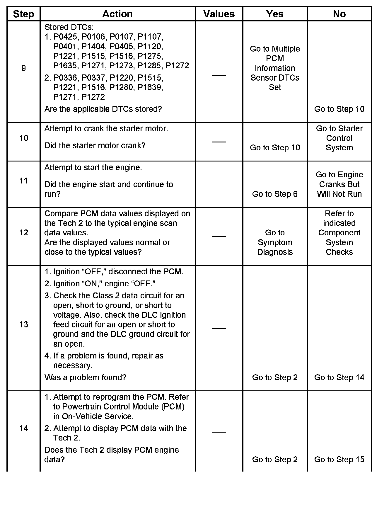 14. A Tech 2 parameter which is not within the typical range may help to isolate the area which is causing the problem.