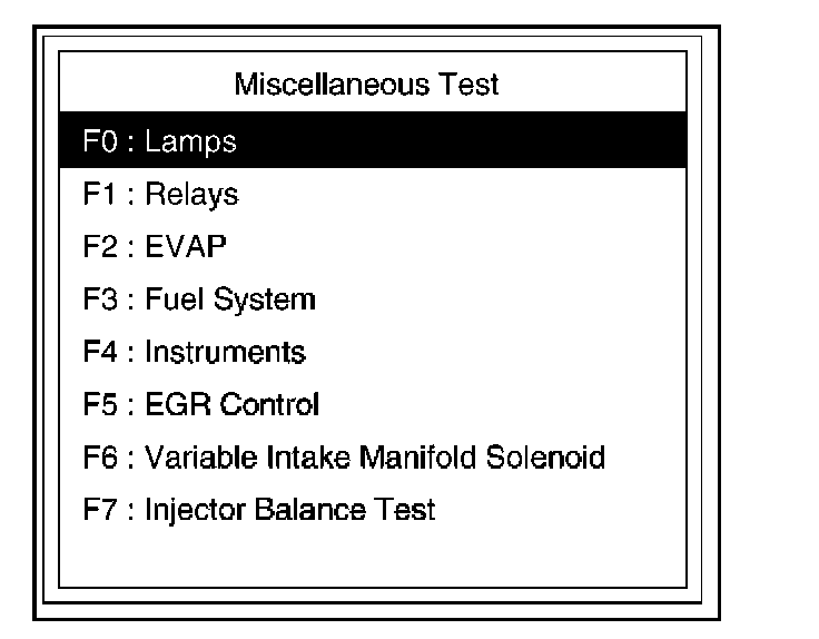 4. Select F0: Lamps Test in the Miscellaneous Test.