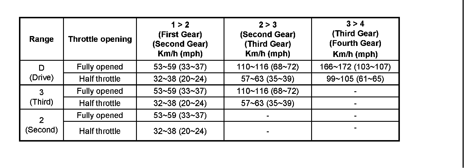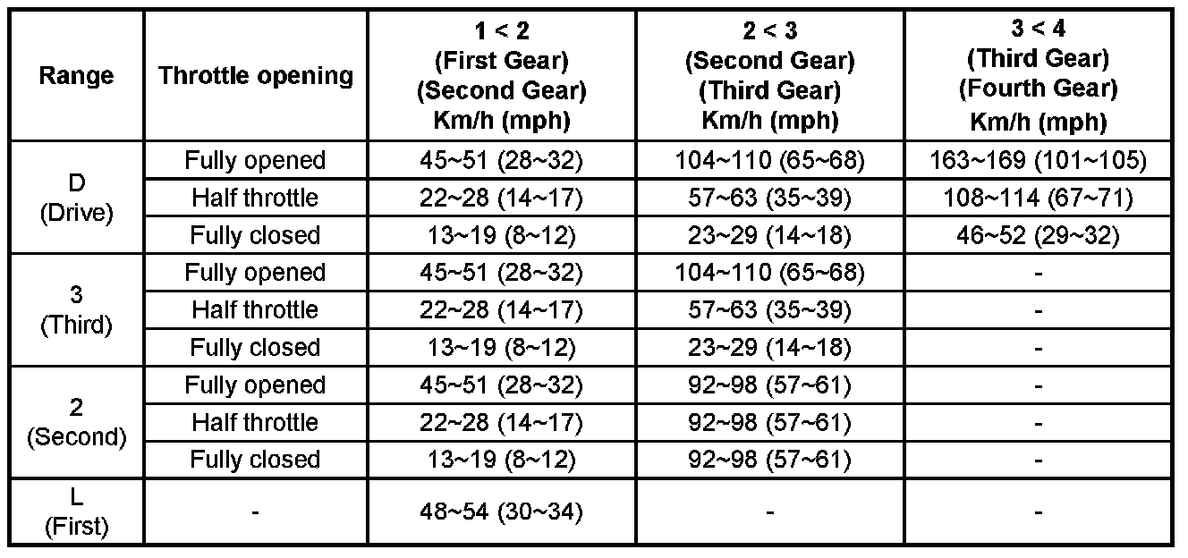 Shift Speed Chart