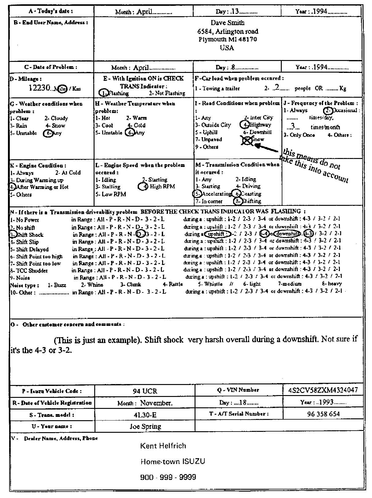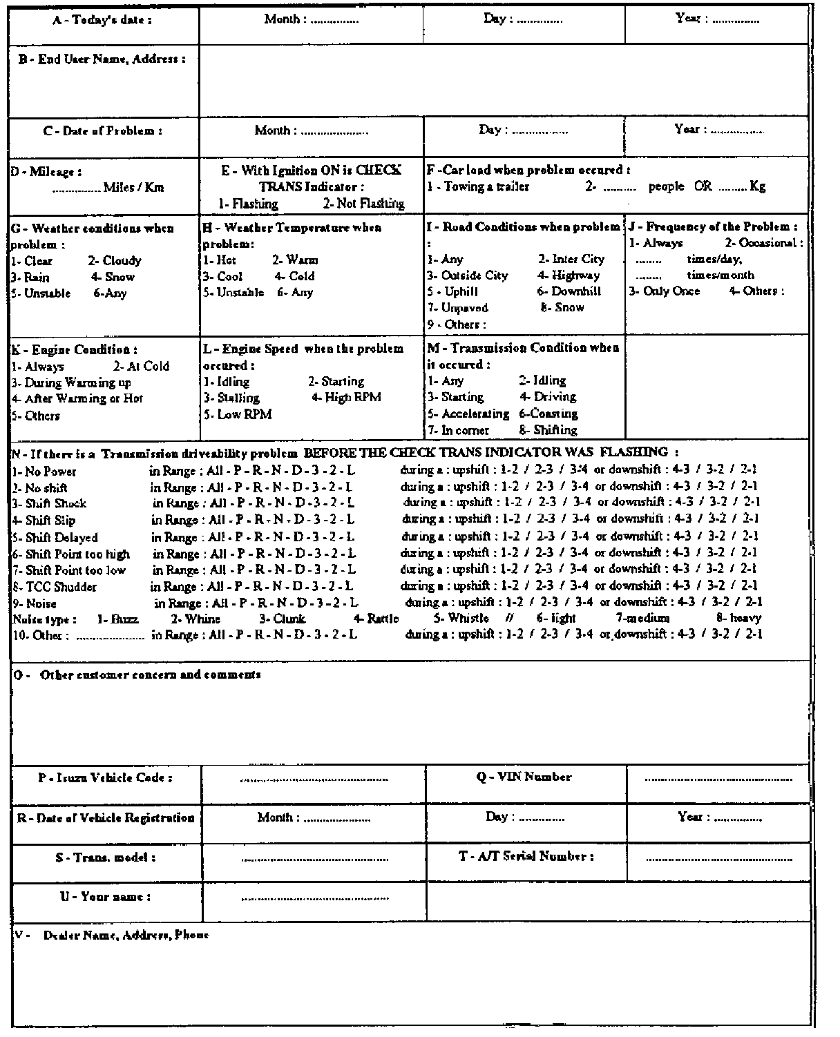 Driver InformationTo analyze the problem, fill out a complete description of the owner's complaint.
