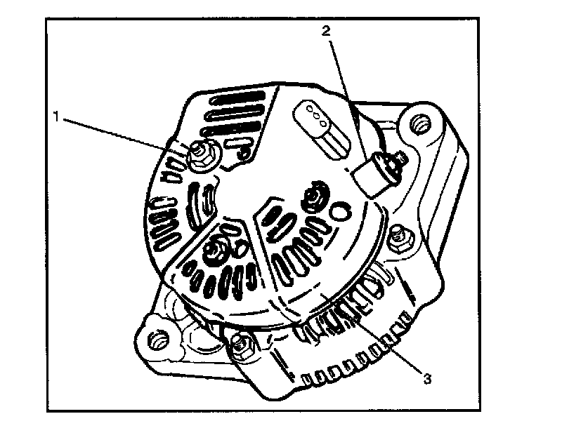 2. Remove three nuts (1) on the rear cover and a nut on terminal B and insulator, then remove the rear cover (3).