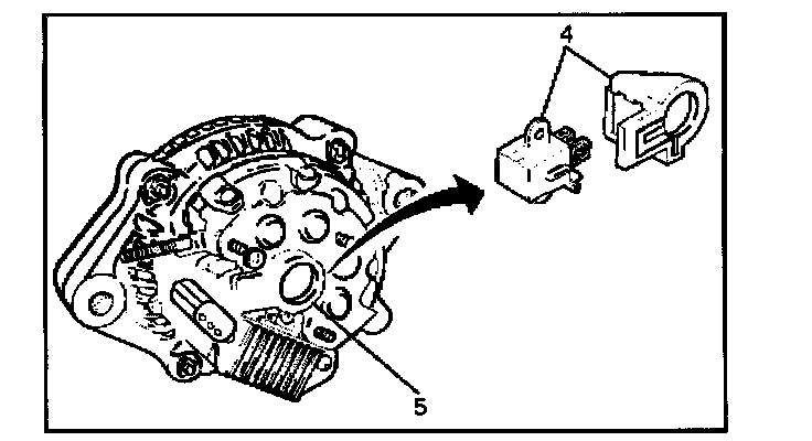 3. Remove two screws that fix the brush holder (5) and rectifier, then remove the brush holder assembly (4).