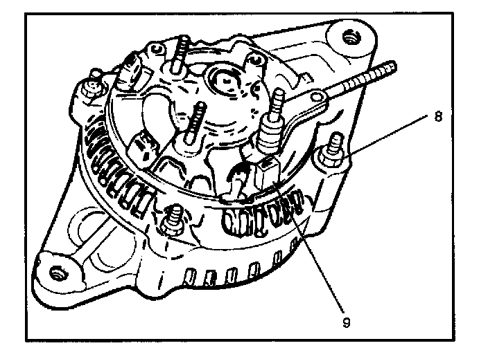 7. Remove four nuts (8) that secure the front cover assembly and rear end cover, and an insulator (9).