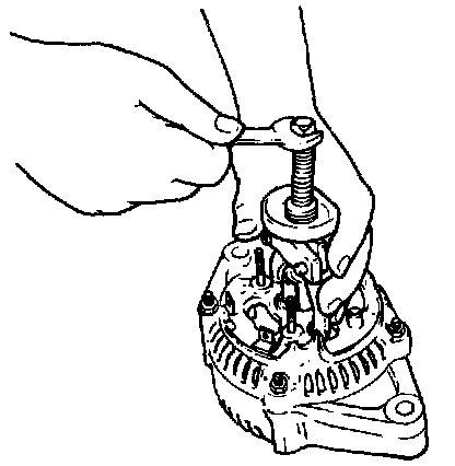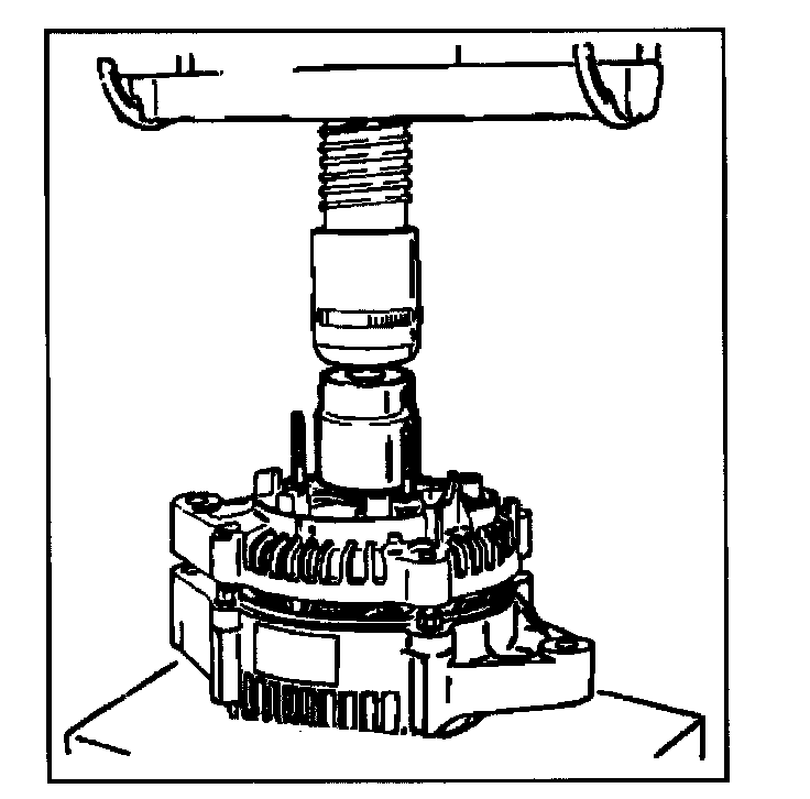 1. Using a press with a socket wrench attached, reassemble rotor and rear end cover assembly in the front cover.