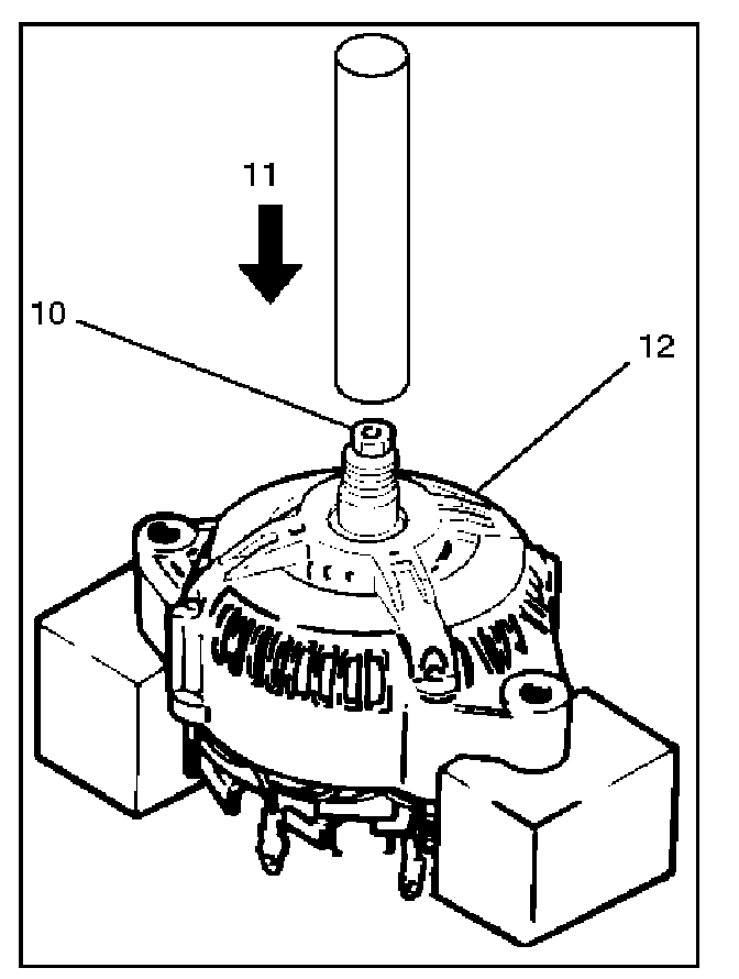 10. Pull the rotor assembly (10) off the front cover assembly (12) using a bench press (11).