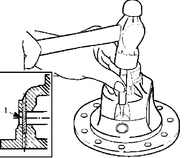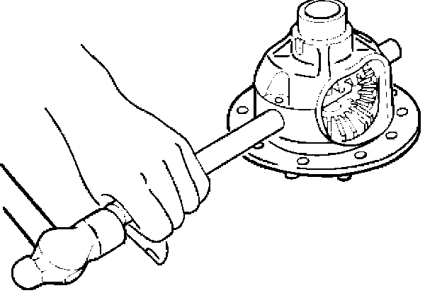 4. Remove the differential shaft by using a hard metal rod and a hammer.