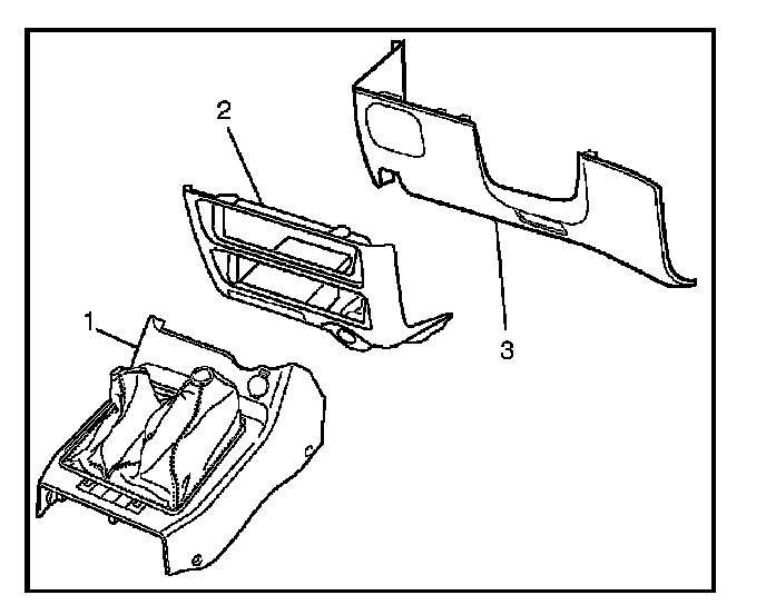 2. Remove the front console assembly (1). Refer to the Instrument Panel Assembly in Body Structure.