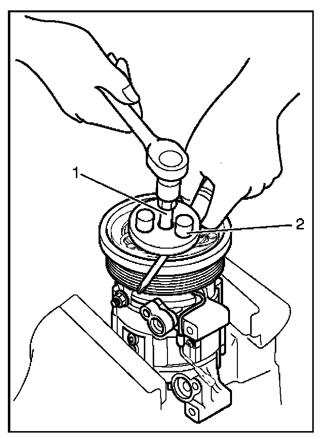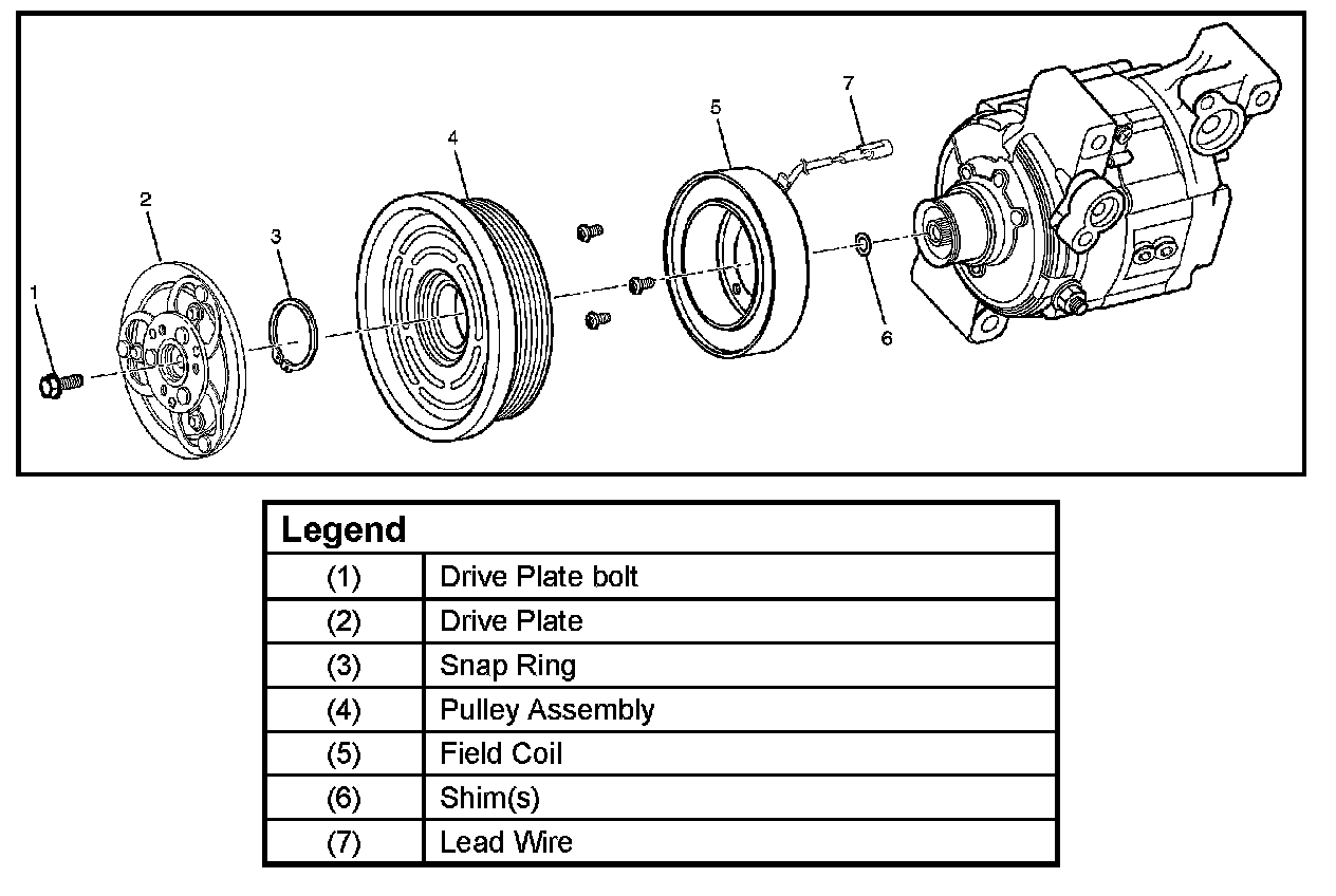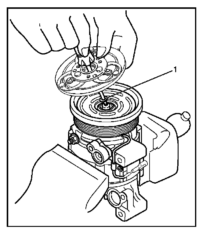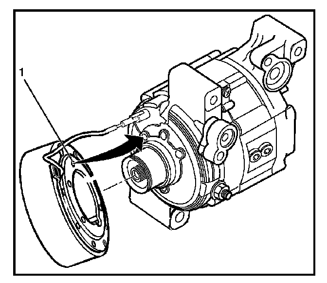 6. Install the drive plate to the compressor drive shaft together with the original shim(s) (1). Press the drive plate by hand.