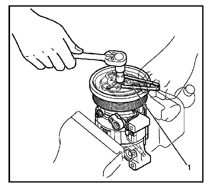 1. Using drive plate holder J-7624 (1) to prevent the drive plate from rotating, then remove the drive plate bolt.