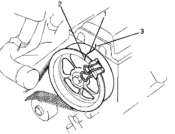 1. Align groove of crankshaft timing pulley (2) with mark on oil pump (1).