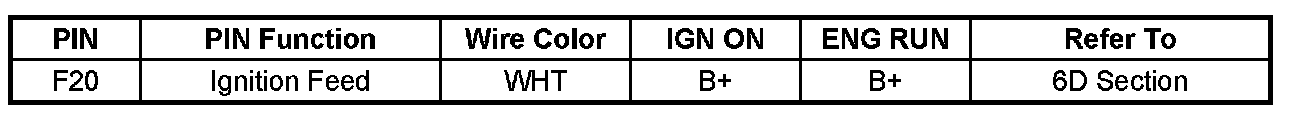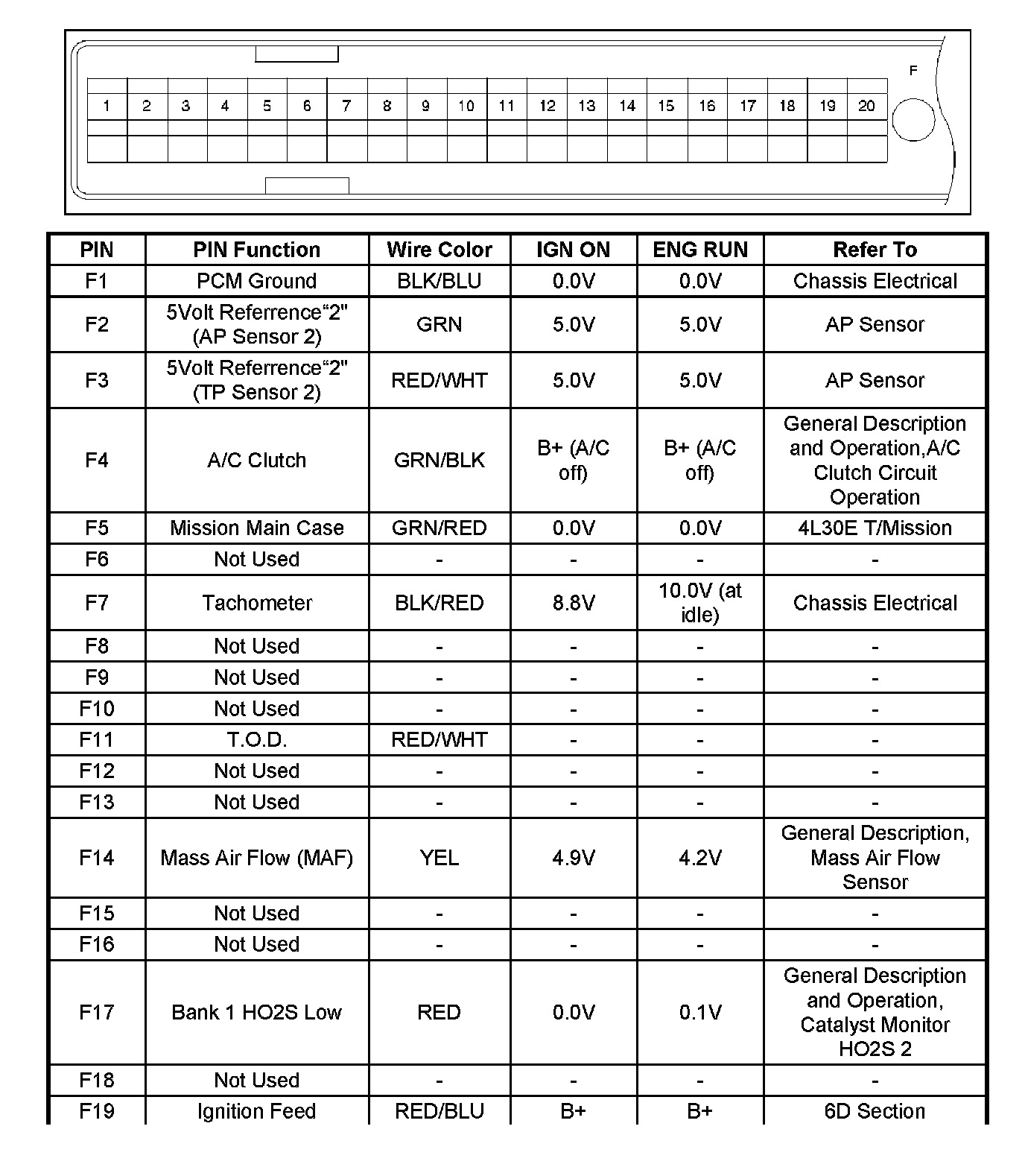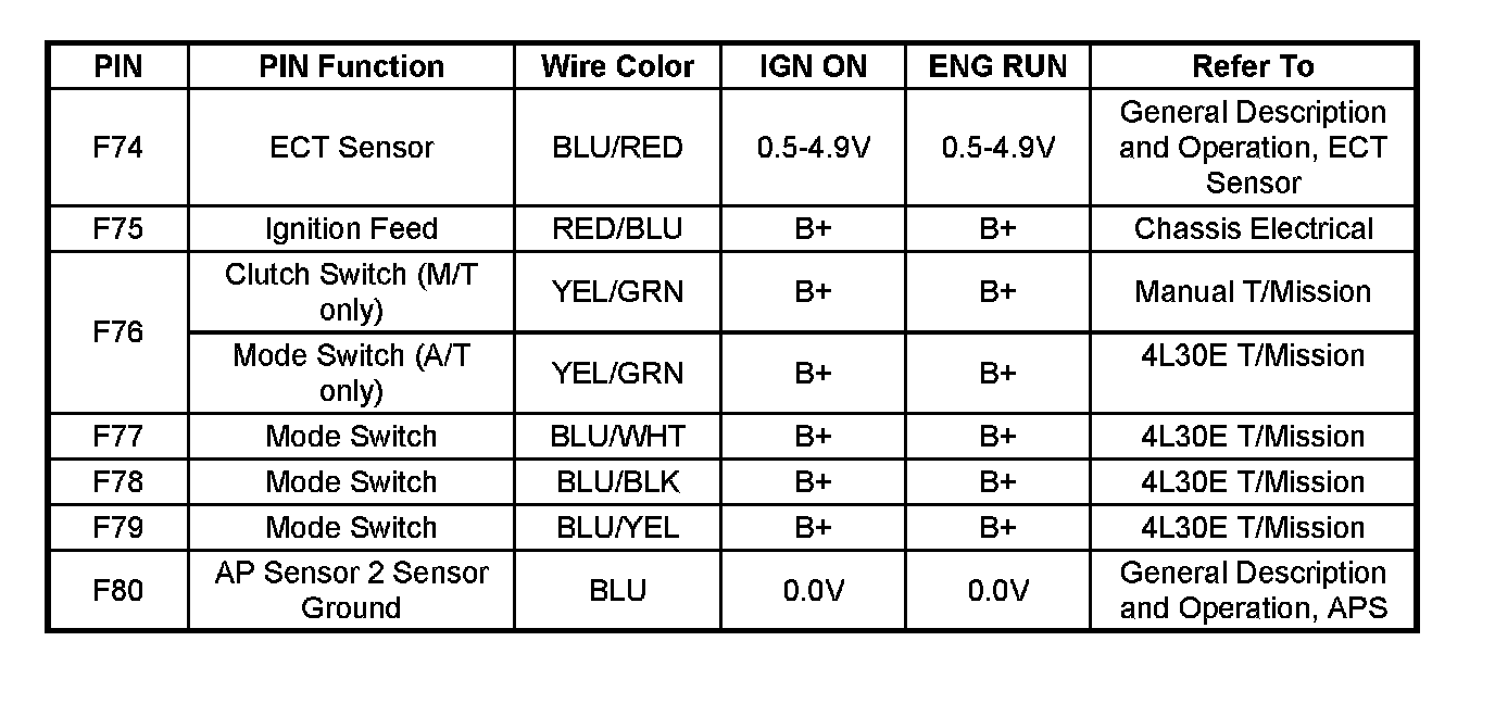 PCM Pinout Table, 80-Way Blue Connector - Row "F1 - F20" Part - 2:
