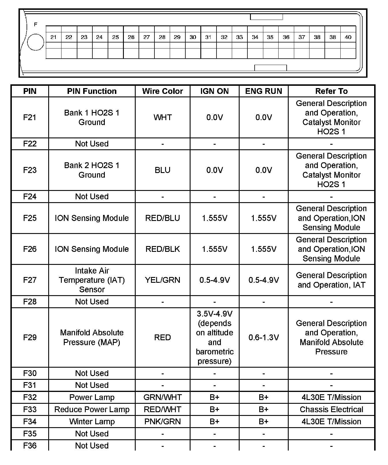 PCM Pinout Table, 80-Way Blue Connector - Row "F20 - 40" Part - 2: