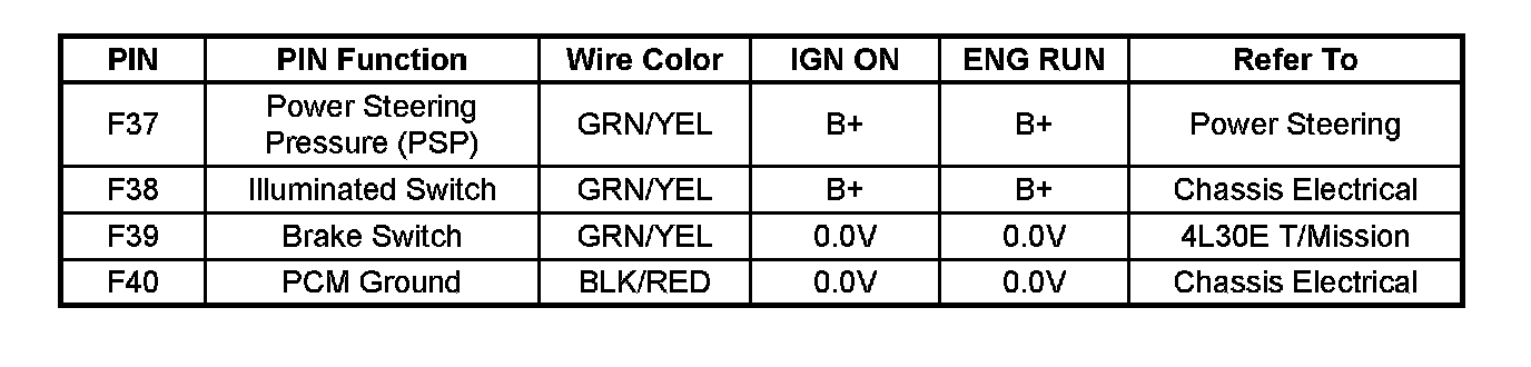 PCM Pinout Table, 80-Way Blue Connector - Row "F20 - 40" Part - 1: