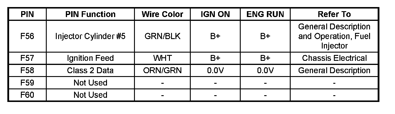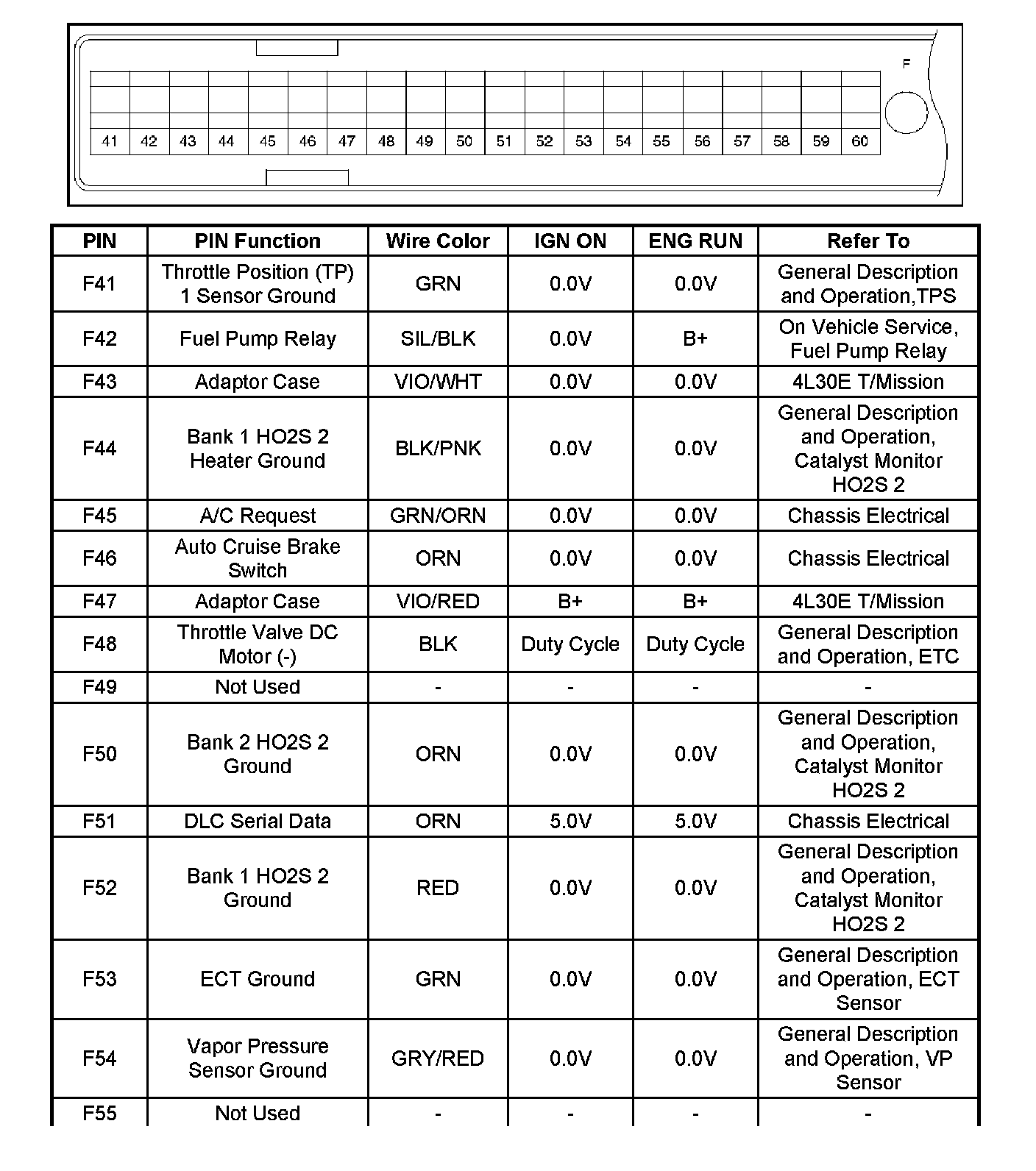 PCM Pinout Table, 80-Way Blue Connector - Row "F41 - 60" Part - 2: