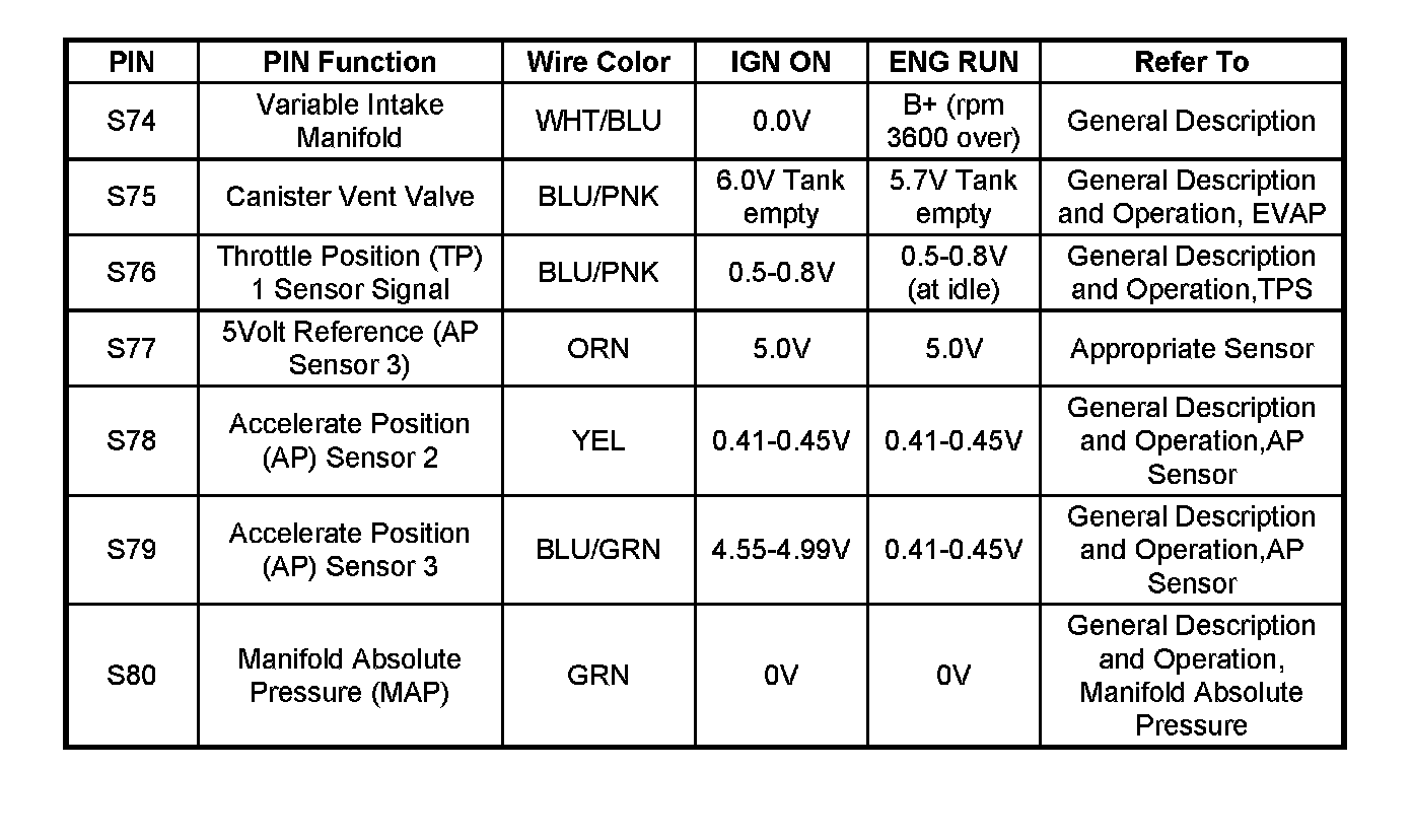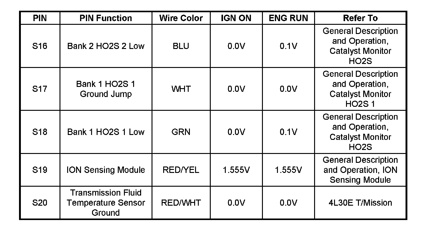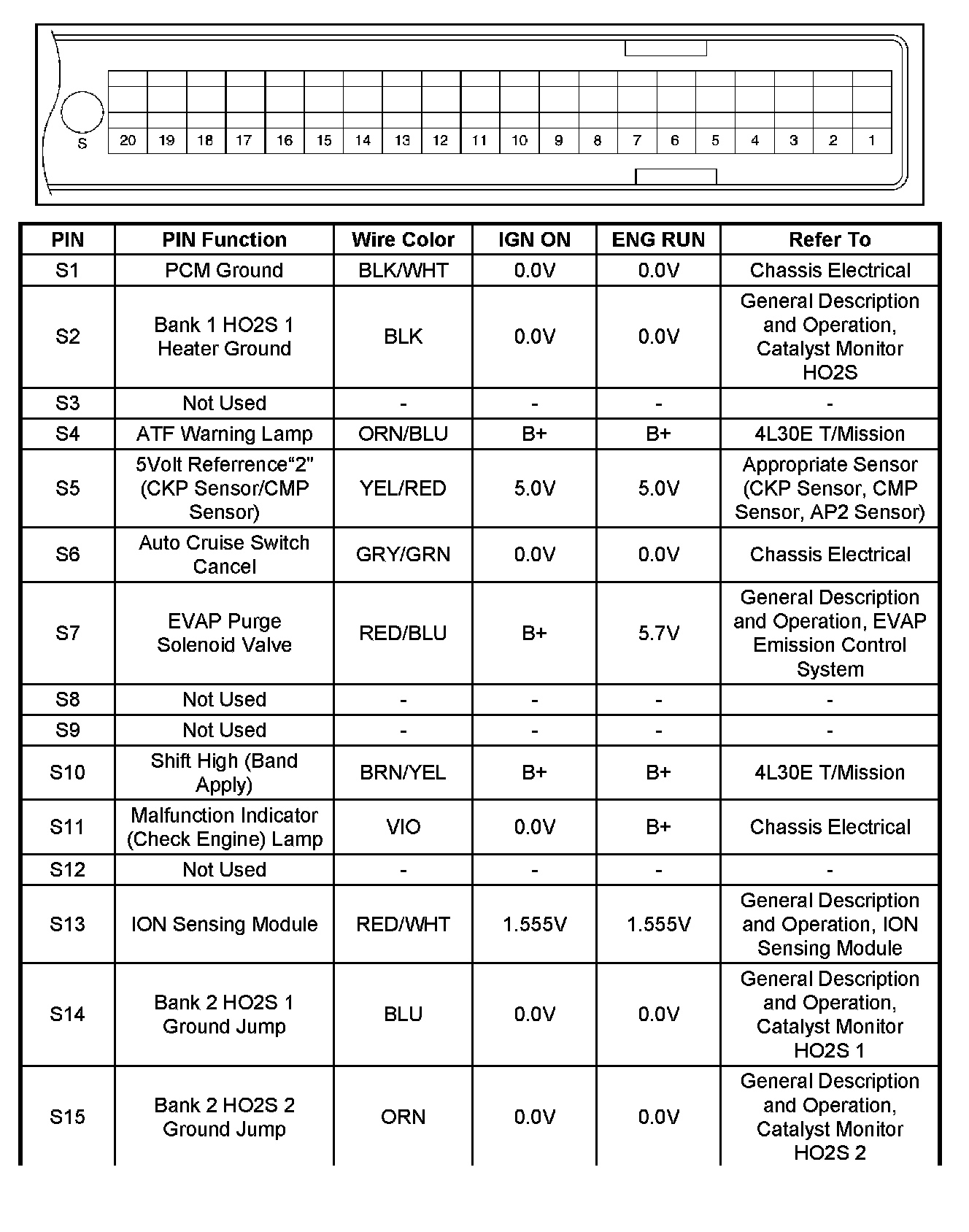 PCM Pinout Table, 80-Way Red Connector - Row "S1 - 20":