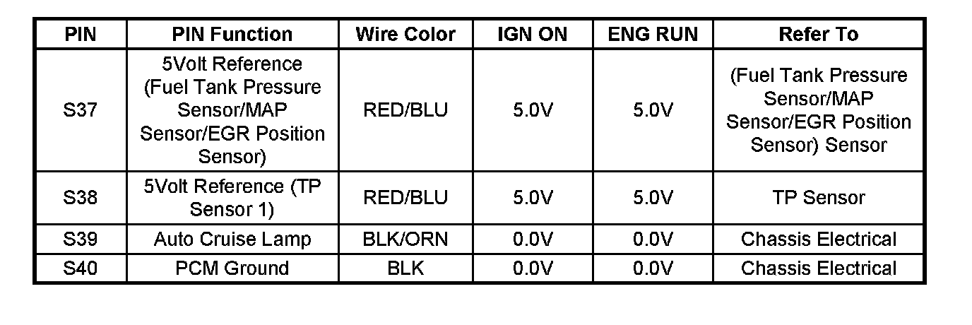 PCM Pinout Table, 80-Way Red Connector - Row "S21 - 40" Part - 1: