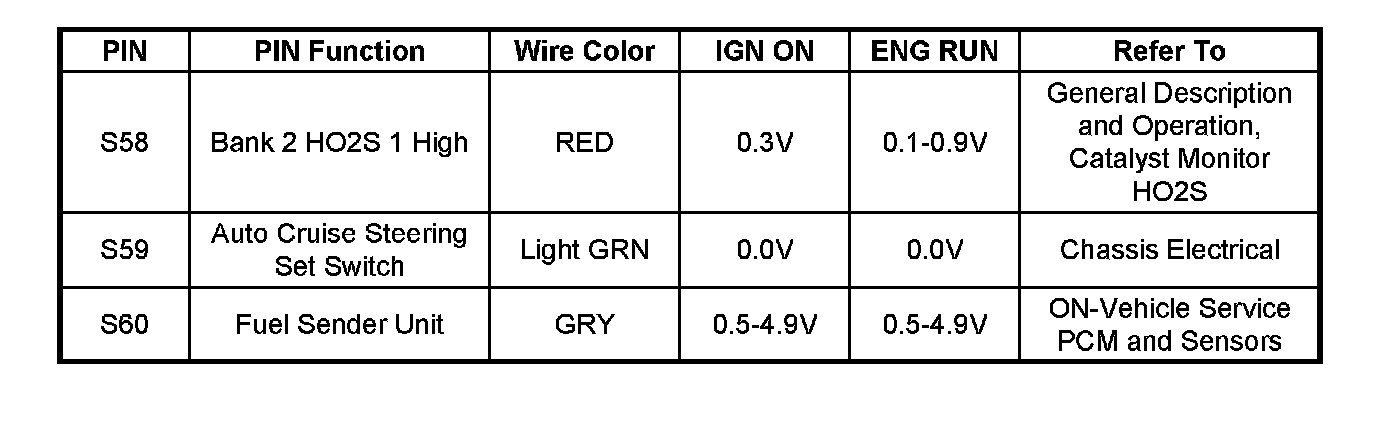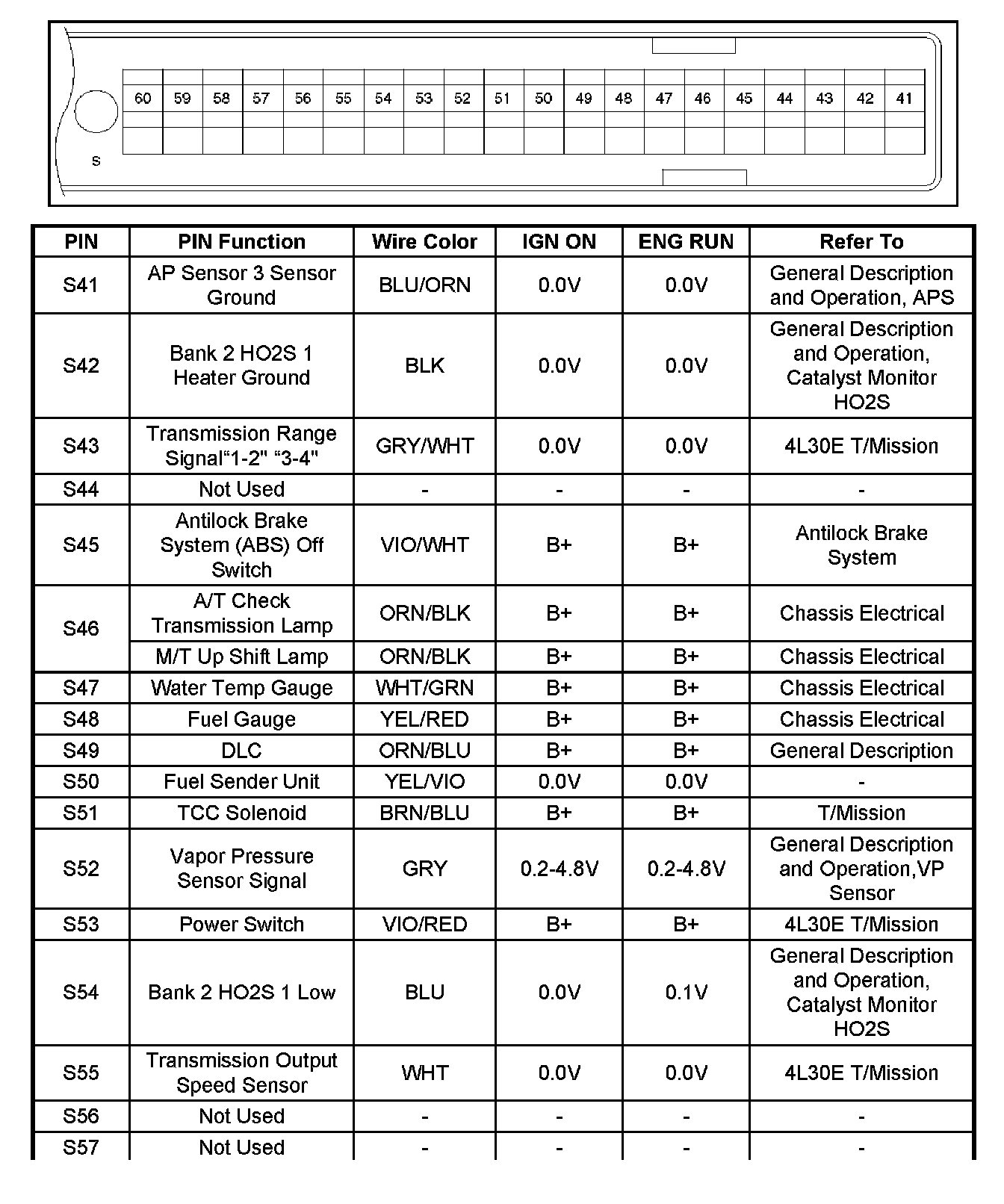 PCM Pinout Table, 80-Way Red Connector - Row "S41 - 60" Part - 2: