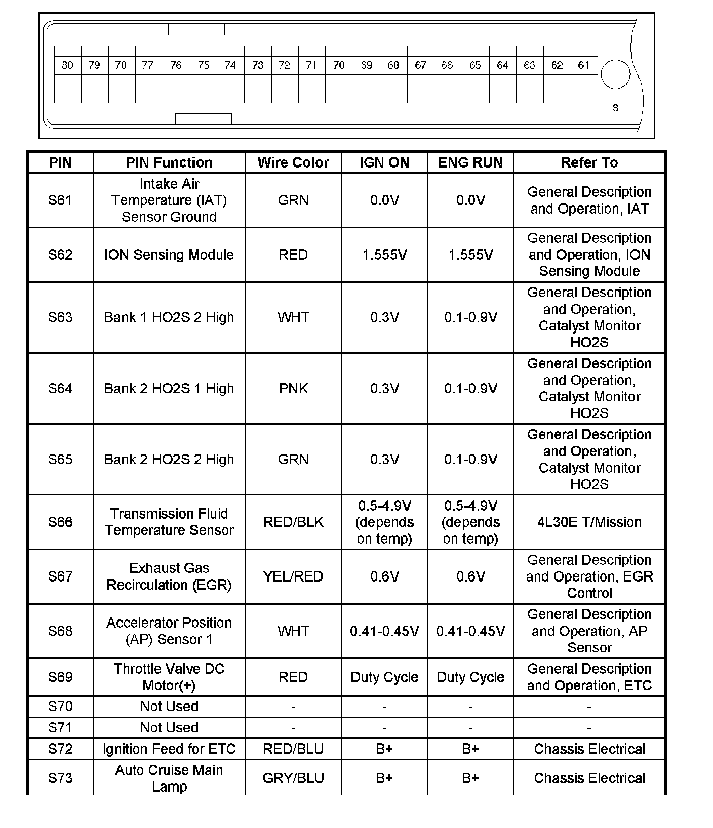 PCM Pinout Table, 80-Way Red Connector - Row "S61 - 80" Part - 2: