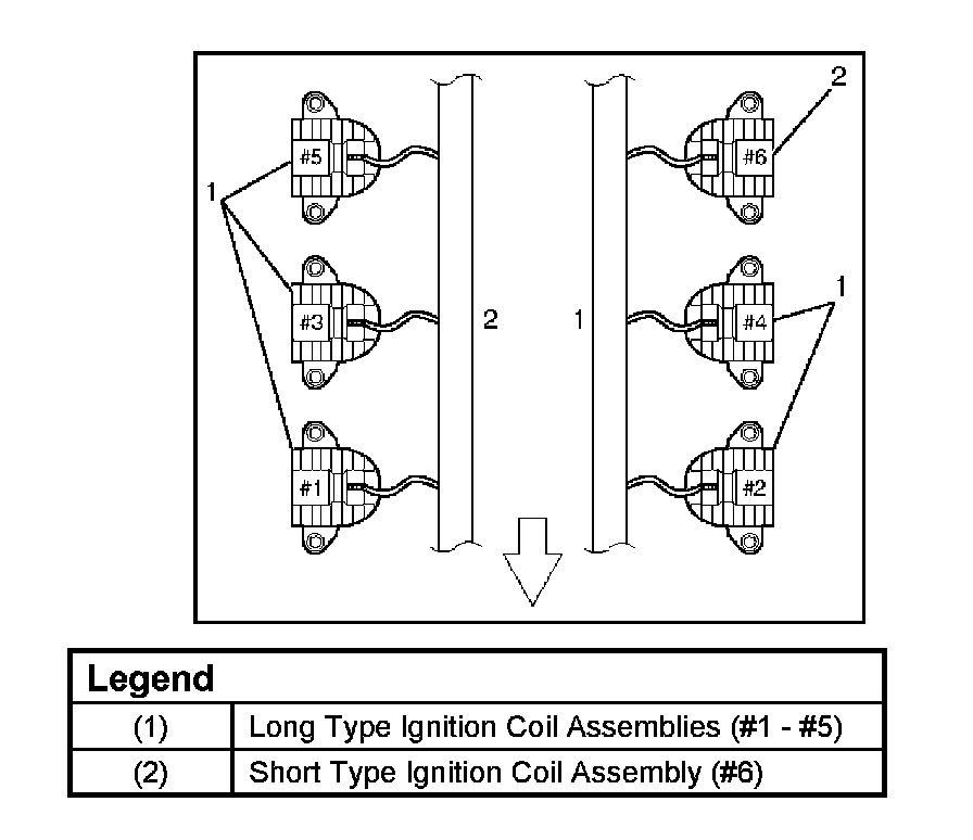 CAUTION: Ignition coil assembly #6 is different from ignition coil assembly from #1 to #5. Ignition coil assemblies #6 is short type. So, note it when installing ignition coil assembly of #6.