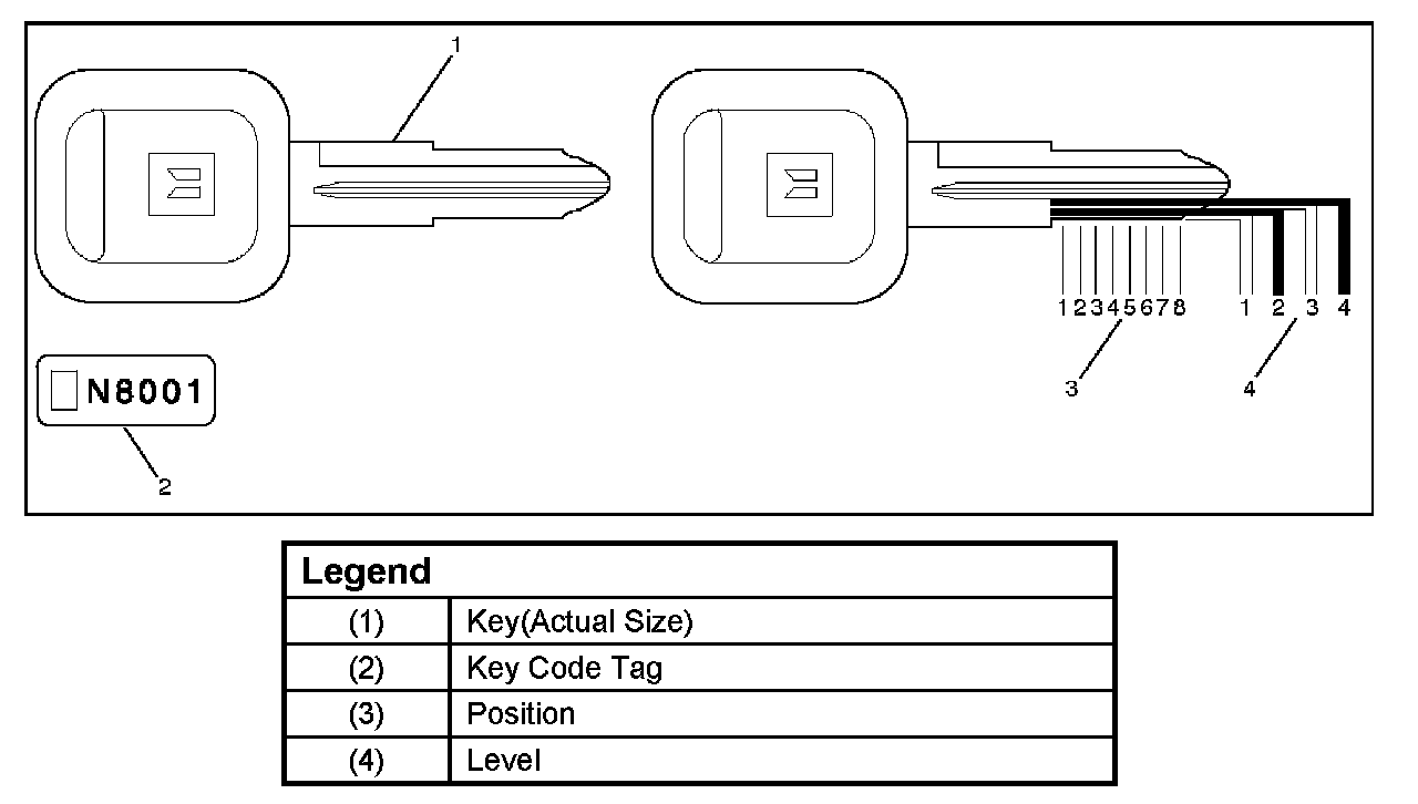 If the original key is available, the key code cutting combination can be determined by laying the key on the diagram shown in the figure.