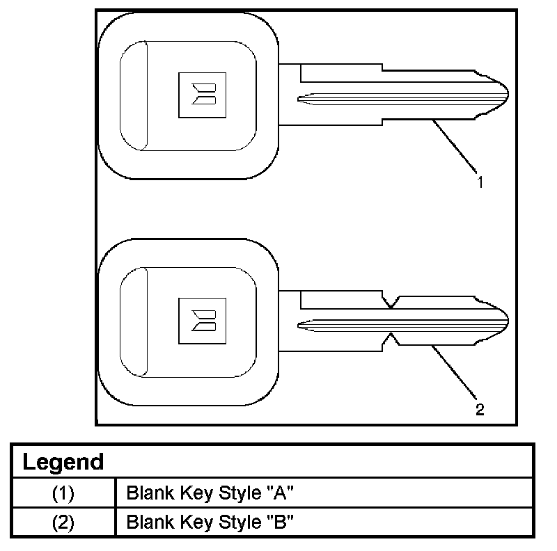 The keys come in styles A or B depending on the key code cutting combination. When the first position in the combination is a 1, 2 or 3, Style A is used. When the first position is a 4, Style B (factory pre-cut key) is used.