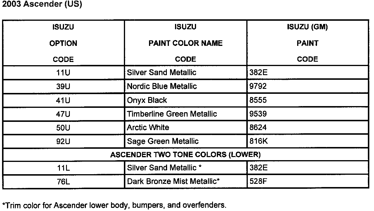 The 3-digit Isuzu option code is printed on the Service ID Information Label inside glovebox.