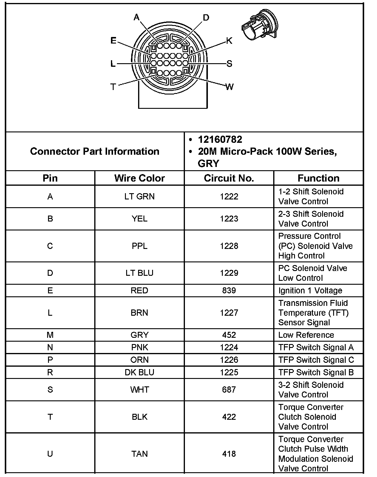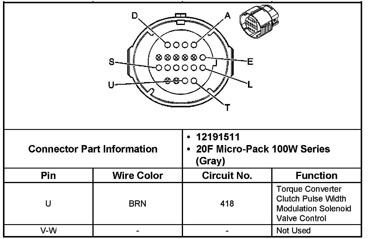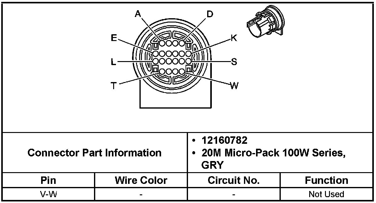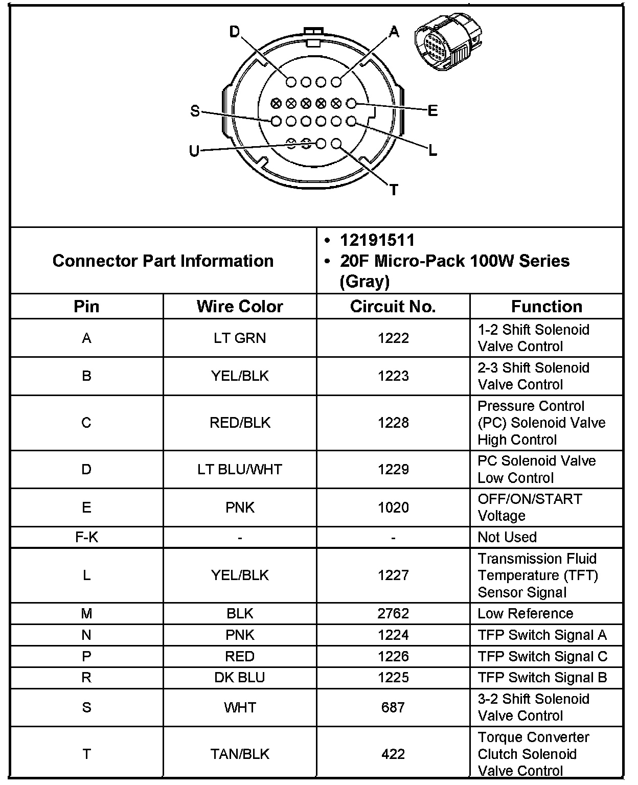 Automatic Transmission 20-Way Inline Connector End View AT Inline 20-Way Connector, Engine Side: